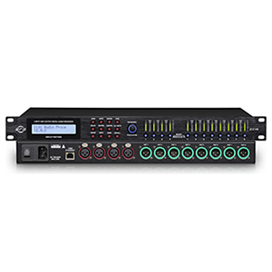 4进8出的音频处理器,使用最新的第四代SHARC ADSP-21488 400Mhz浮点DSP,具有强大的DSP处理能力。每个输入、输出有16段参数滤波器,增益控制、噪声门功能、RMS压限、内置的粉红/白噪声发生器,以及可调的延时。分频器的斜率从6dB/Oct到48dB/Oct范围内可选。延时步进精度0.02ms,电平增益精度0.1dBu,满足现场精细调节。